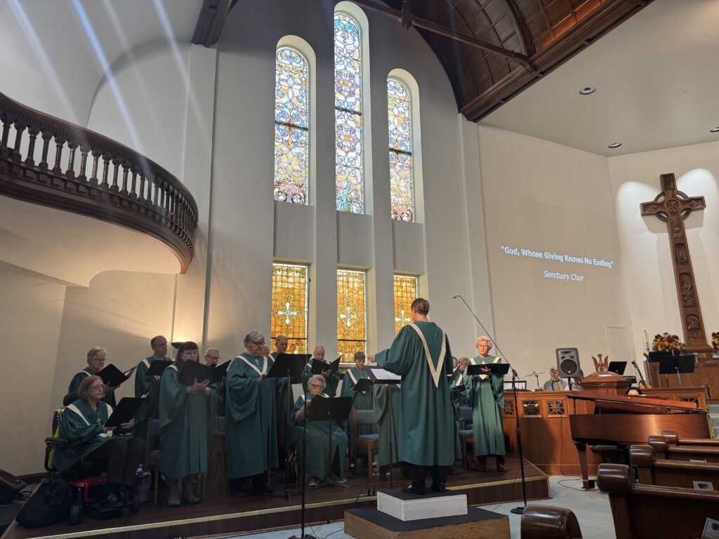 Worship is 9:30 AM each week in the Sanctuary, where we take communion together on the first Sunday of each month. This service incorporates some elements of contemporary worship with some traditional responsive readings and hymns. The Sanctuary choir may participate in the service, along with our handbell choirs or various musicians depending on the season or themes.